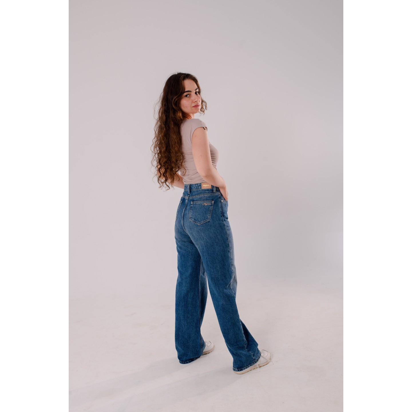 Jean femme coupe wide leg, taille ultra haute, en denim classique