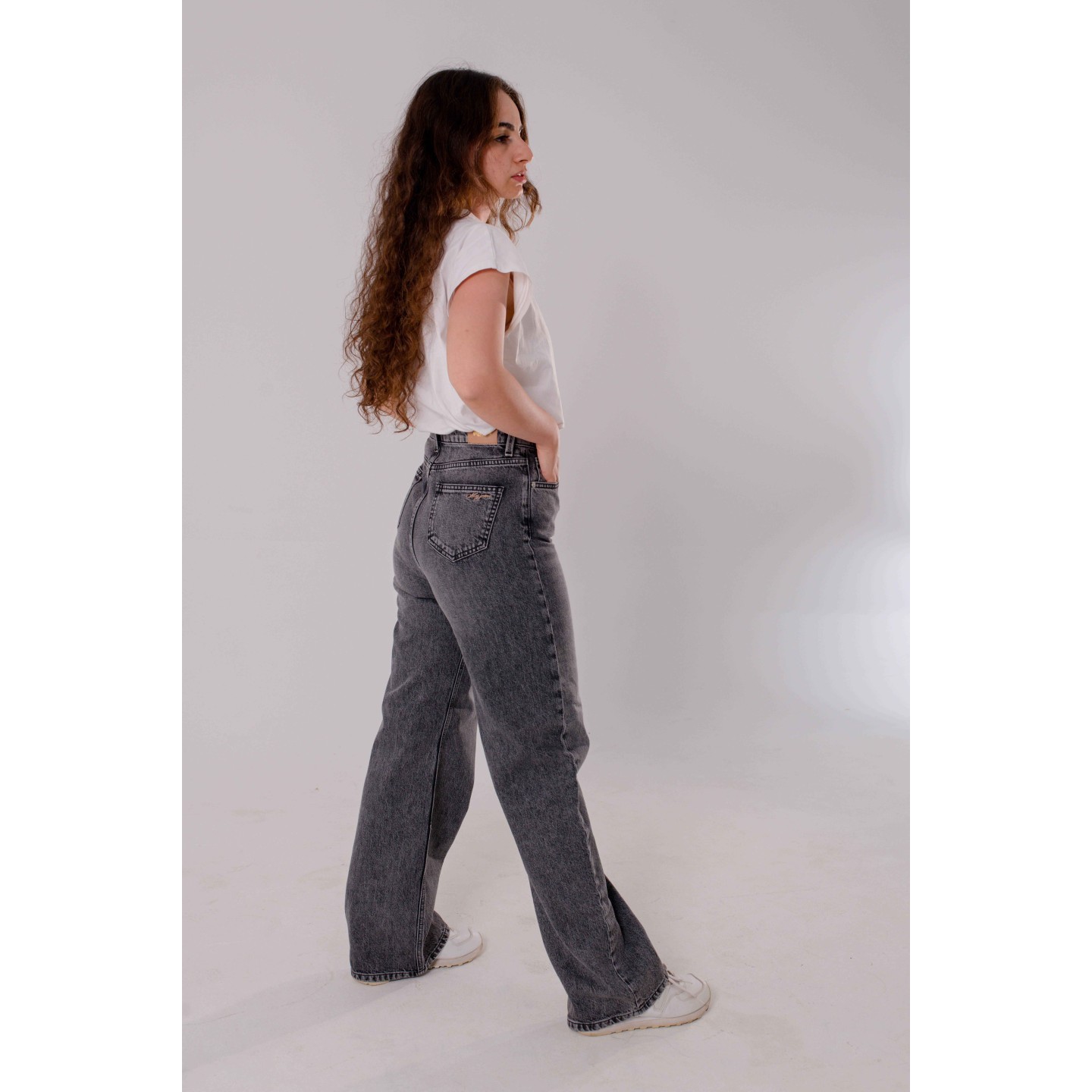 Jean femme coupe wide leg, taille ultra haute, en denim classique