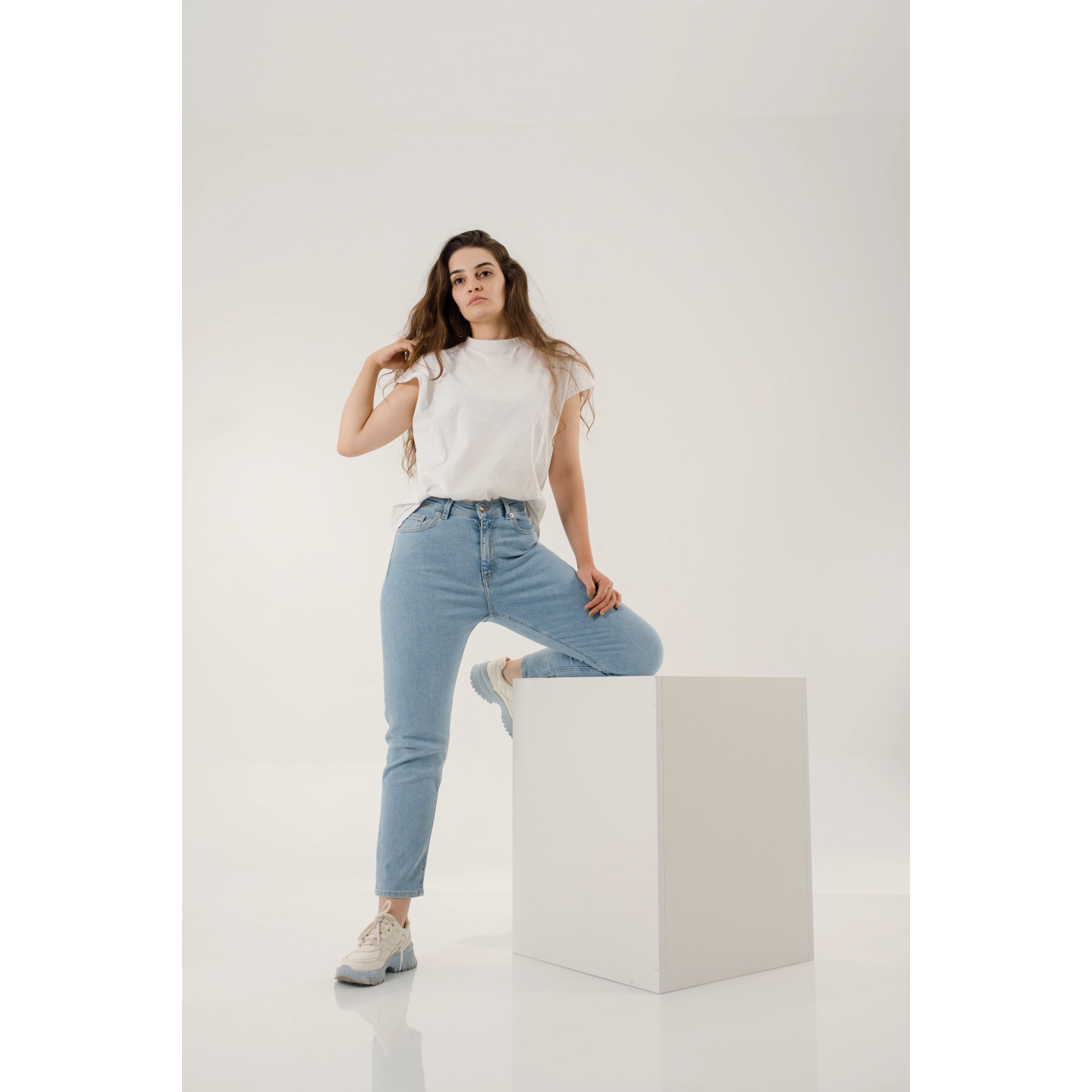 Sa forme mom fit combine parfaitement style et aisance, idéale pour les sorties du quotidien, le travail ou un look streetwear tendance.