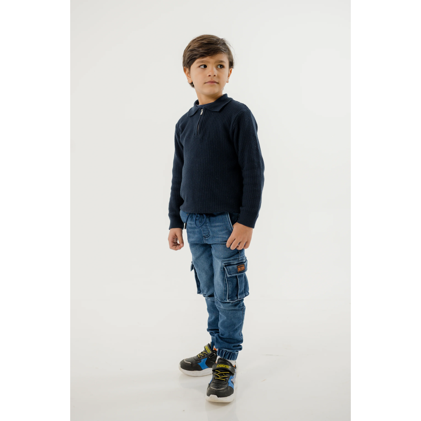 pantalon jeans pour garçon avec poches cargo latérales et bas resserré , alliant confort et style moderne