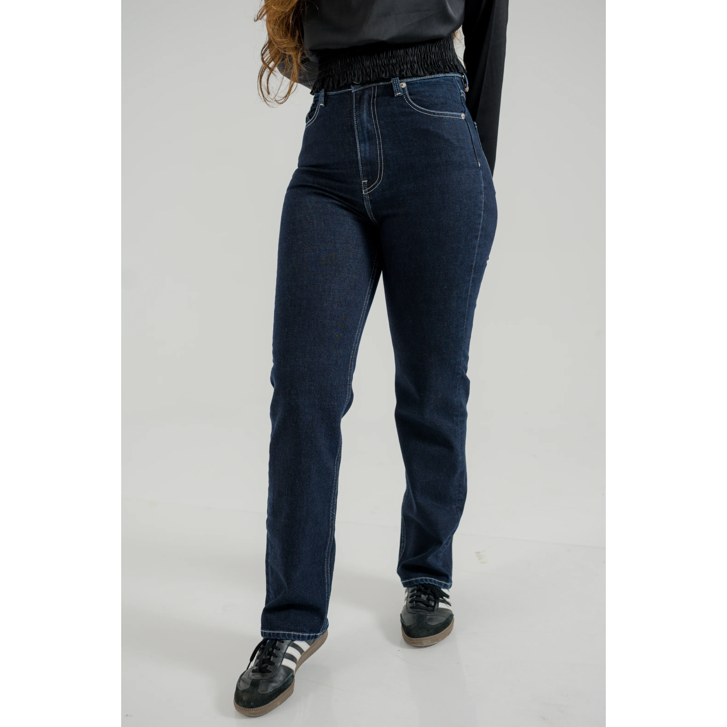 Jean taille haute avec cinq poches