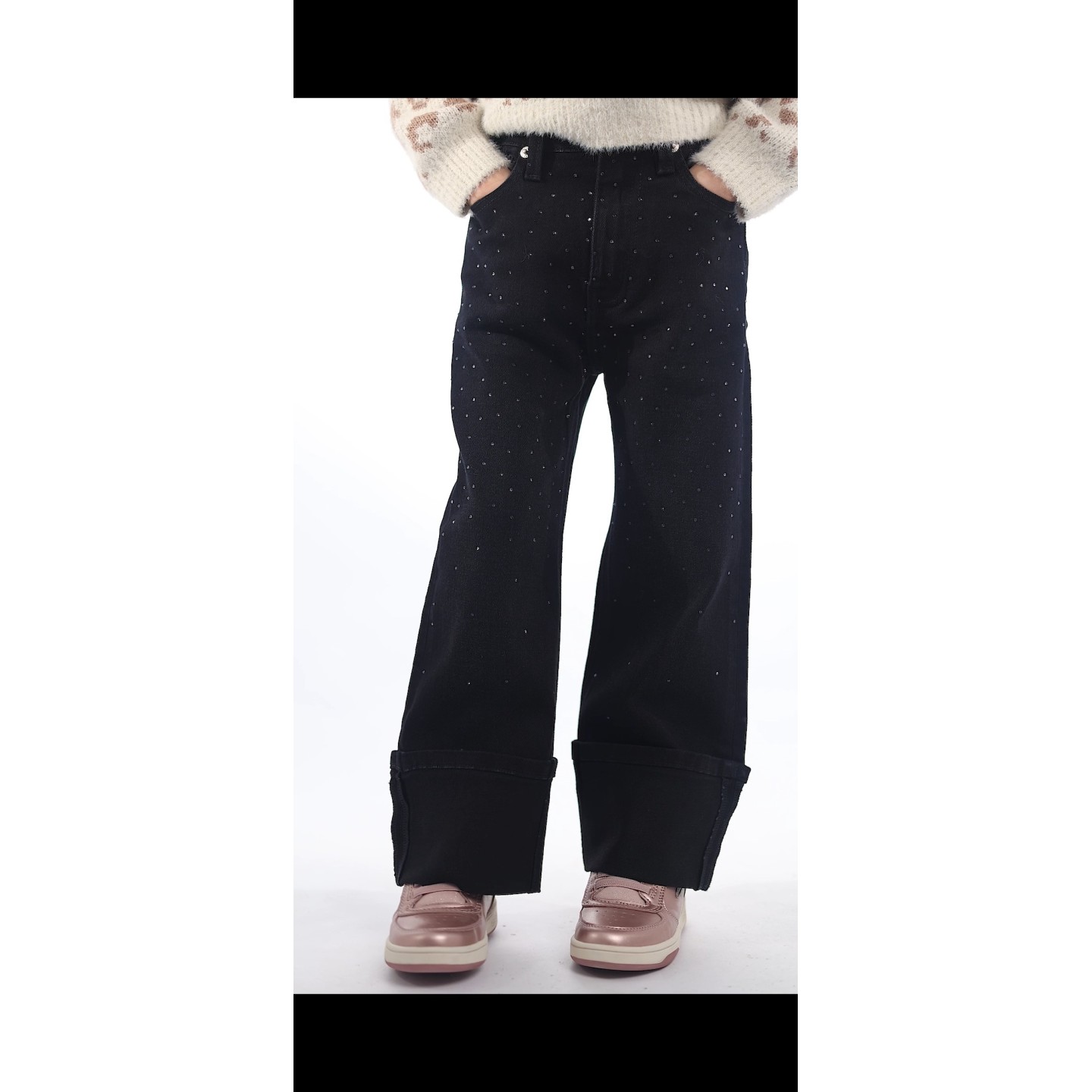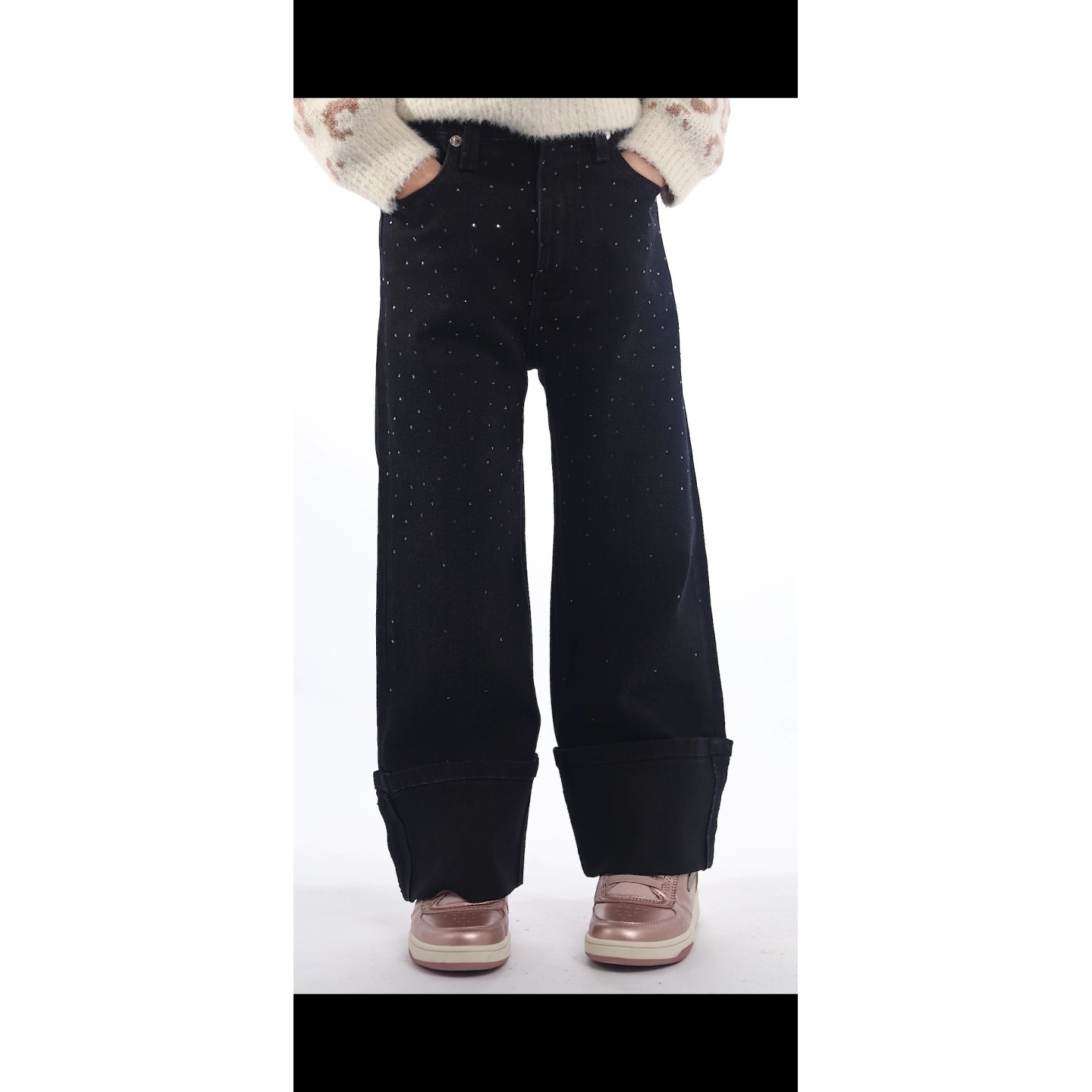 pantalon 5 pocheche coupe large avec strasse , revers